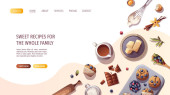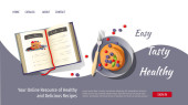 Naleśniki na talerzu i otwarta książka receptury. Ilustracja wektorowa do gotowania i receptur. Plakat, baner, okładka, projekt karty.