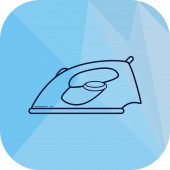Wygładzanie znaku żelaza. Jasna Cerulean ikona w białej Balloo mowy