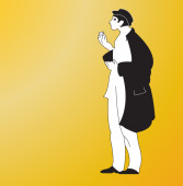 drzeworyt ilustracja mężczyzna czołga i całując buty innego człowieka