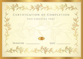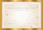 certyfikat, dyplom ukończenia (szablon projektu, tła) z kwiatowy wzór, złota granicy (rama), insygnia. przydatne dla: certyfikat osiągnięć, certyfikat edukacji, nagrody