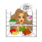 dziewczyna z nadwagą zjada sałatkę ale marzy o jedzeniu fast food