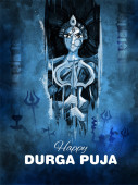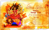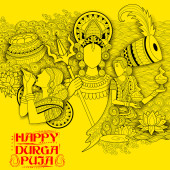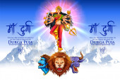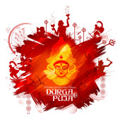 Bogini Durga twarz w Happy Durga Puja Subh Navratri Indian religijne nagłówek tle