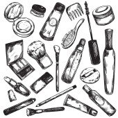 zestaw narzędzi do higieny i łazienka w vintage