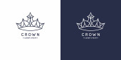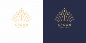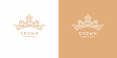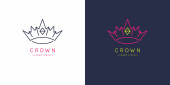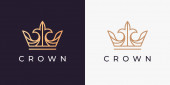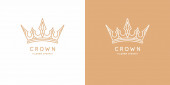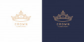 Oryginalny liniowy obraz korony. Izolowany wektor emblemat. Ilustracja w prostym, płaskim stylu.