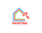 Zdjęcie "Malowanie ikona znaku domu. Symbol narzędzia do malowania. Dom ilustracja kolor tęcza." może być wykorzystywane do celów osobistych i komercyjnych zgodnie z warunkami zakupionej licencji Royalty-free. Obraz jest dostępny do pobrania w jakości wysokiej rozdzielczości do 5760x3840.