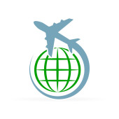 Projekt z samolotu. Logo z samolotem, który leci wokół tekstu. Ramka lub obramowanie.