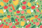Zdjęcie "Warzyw bez szwu wzór. Wegetariański zestaw produktów na rynku rolnym" może być wykorzystywane do celów osobistych i komercyjnych zgodnie z warunkami zakupionej licencji Royalty-free. Obraz jest dostępny do pobrania w jakości wysokiej rozdzielczości do 5760x3840.