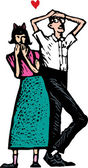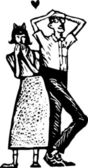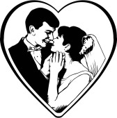 drzeworyt ilustracja panny młodej i pana młodego, całowanie na zmiany