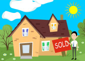 drzeworyt ilustracja szczęśliwa para obchodzi ich nowy dom