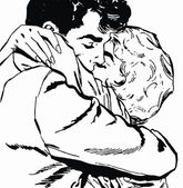 drzeworyt ilustracja starszy para siedzi na ławce na zimny dzień