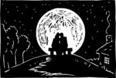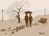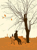 drzeworyt ilustracja starszy para siedzi na ławce na zimny dzień