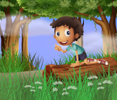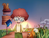 szczęśliwy młody chłopak na szczycie wzgórza z wiewiórki