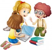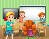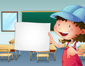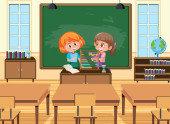 dziewczyna i chłopak oglądając puste szyld wewnątrz classro