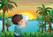 dziewczyna przy użyciu jej laptopa, w pobliżu rzeki