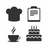 Ikony żywności. Muffin Cupcake symbol. Widelec, łyżka. Wektor