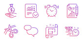 Szybkie porady, przewiń w dół i najlepszy zestaw ikon menadżera. Smartfon wodoodporny, zarządzanie czasem i znaki logiczne. Wektor