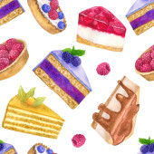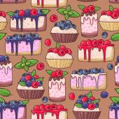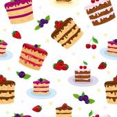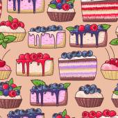 Ciasta plasterki bezszwowe tło. Bezproblemowy wzór z placków. Ilustracja wektorowa, wzór bez szwu.