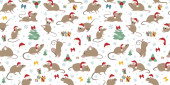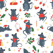 Zdjęcie "Myszy Christmas bezszwowe wzór. Mysz stwarza i ćwiczenia. Ładna" może być wykorzystywane do celów osobistych i komercyjnych zgodnie z warunkami zakupionej licencji Royalty-free. Obraz jest dostępny do pobrania w jakości wysokiej rozdzielczości do 5760x3840.
