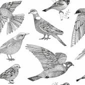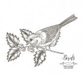 Kolekcja ptaki. Cycki, zięby, Szczygły i Zimorodek siedzi na gałęzi. Ilustracja wektorowa. Styl Vintage Grawerowanie.