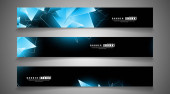 Kolekcja banner, tło wektorowe z świecące Neon niebieskie pasy w ciemnym pomieszczeniu.