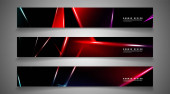 Kolekcja banerów, tło wektorowe z świecącymi Neon szare pasy w ciemnym pomieszczeniu.