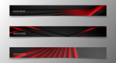 Kolekcja banner, tło wektorowe z świecące Neon czerwone pasy w ciemnym pomieszczeniu.