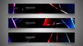 Kolekcja banner, tło wektorowe z świecące Neon czerwone pasy w ciemnym pomieszczeniu.