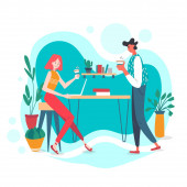 Zdjęcie "Szczęśliwa rodzina ojca i Little Baby Girl siedzi na wysokim stołku o obiad siedzący stół z żywnością w kuchni. Tata karmić córkę, ludzie jedzą posiłek podczas obiadu. Kreskówka płaski wektor ilustracja" może być wykorzystywane do celów osobistych i komercyjnych zgodnie z warunkami zakupionej licencji Royalty-free. Obraz jest dostępny do pobrania w jakości wysokiej rozdzielczości do 5760x3840.
