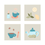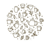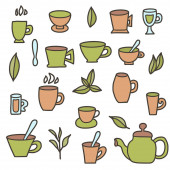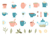 Zestaw do herbaty. Kubki i czajniki. Ilustracja wektorowa.