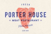 Stek, Chalkboard. Plakat z sylwetki stek, tekst Porter House, Steak. Typografia kuchnia plakat szablon do mięsa biznesu-sklep, rynek, restauracja. Tło Chalkboard. Ilustracja wektorowa