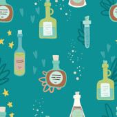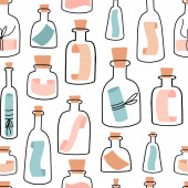 Eliksir lub butelki trucizny ręcznie rysowane doodle styl bezszwowy wzór.