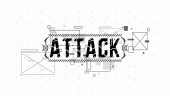 Ataku. Układ koncepcyjny z elementami HUD do druku i www. Napisy z futurystycznymi elementami interfejsu użytkownika.