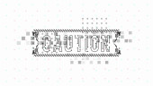 Ostrożność. Układ koncepcyjny z elementami HUD do druku i www. Napisy z futurystycznymi elementami interfejsu użytkownika.