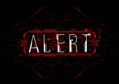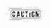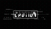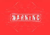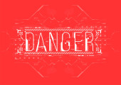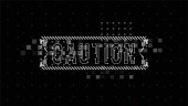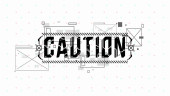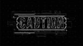 Ostrożność. Układ koncepcyjny z elementami HUD do druku i www. Napisy z futurystycznymi elementami interfejsu użytkownika.