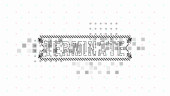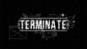 Zakończyć. Układ koncepcyjny z elementami HUD do druku i www. Napisy z futurystycznymi elementami interfejsu użytkownika.