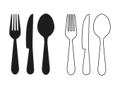 Zestaw sztućców wektorowych. Widelec, nóż. Płaski styl.