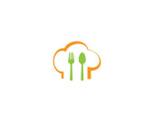 Liść widelca i chmura logo wektor projektu. Koncepcja ekologicznej żywności z widelcem i liściem.