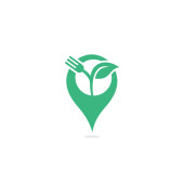 Zdjęcie "Liść widelca i logo GPS znak wektor projektu. Ekologiczna żywność restauracja lub kawiarnia koncepcja logo z widelcem i liści." może być wykorzystywane do celów osobistych i komercyjnych zgodnie z warunkami zakupionej licencji Royalty-free. Obraz jest dostępny do pobrania w jakości wysokiej rozdzielczości do 5760x3840.