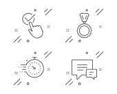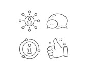 Zestaw ikon wyszukiwania w Internecie, Messengera i grupy. Znak żarówki. Wyszukiwarka internetowa, Bubble Speech, deweloperzy. Wektor