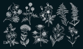 Letnia kolekcja kwiatów polowych. Wektor zestaw ręcznie rysowane zioła