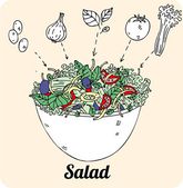 Zdjęcie "Wektor ilustracja Sałatka warzywna. Zdrowa żywność." może być wykorzystywane do celów osobistych i komercyjnych zgodnie z warunkami zakupionej licencji Royalty-free. Obraz jest dostępny do pobrania w jakości wysokiej rozdzielczości do 5760x3840.