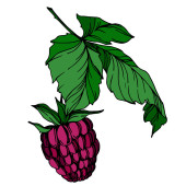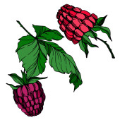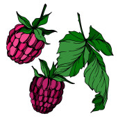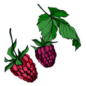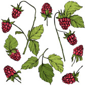 Vector malina zdrowe jedzenie świeże jagody na białym tle element. Czarno-biała grawerowana sztuka atramentu.