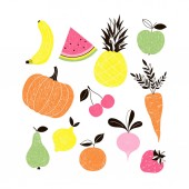 Słodka kolekcja świeżych owoców z wiśnią, cebulą wiosenną, ba