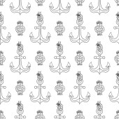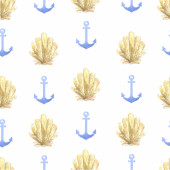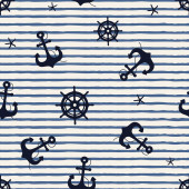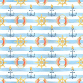 Kotwica, kierownica, boja życia na tle paski akwarela ręcznie malowane bez szwu wzór.