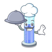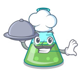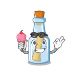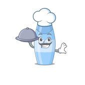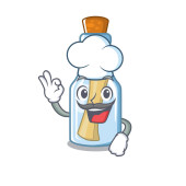 Szef kuchni z komunikatem żywnościowym w butelce na postać