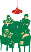 drzeworyt ilustracja lekarz lub szpital poczekalni