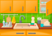 Zlewozmywak z czystych potraw i akcesoriów, porządek i komfort.