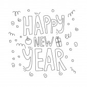 Szablon, aby osadzić pozdrowienia. Tło z napisem szczęśliwego nowego roku. Ilustracja wektorowa ze złotymi liniami.
