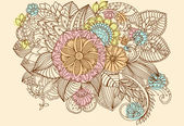 wektor zaproszenie kwiatowy, kwiaty retro ręka i liści
