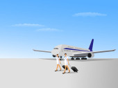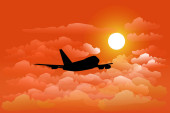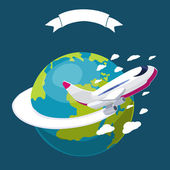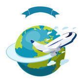 Biała płaszczyzna latająca dookoła globu z czarnym tłem